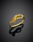 Bracciale rigido in oro giallo a guisa di felino rifinito con smalti verdi,...