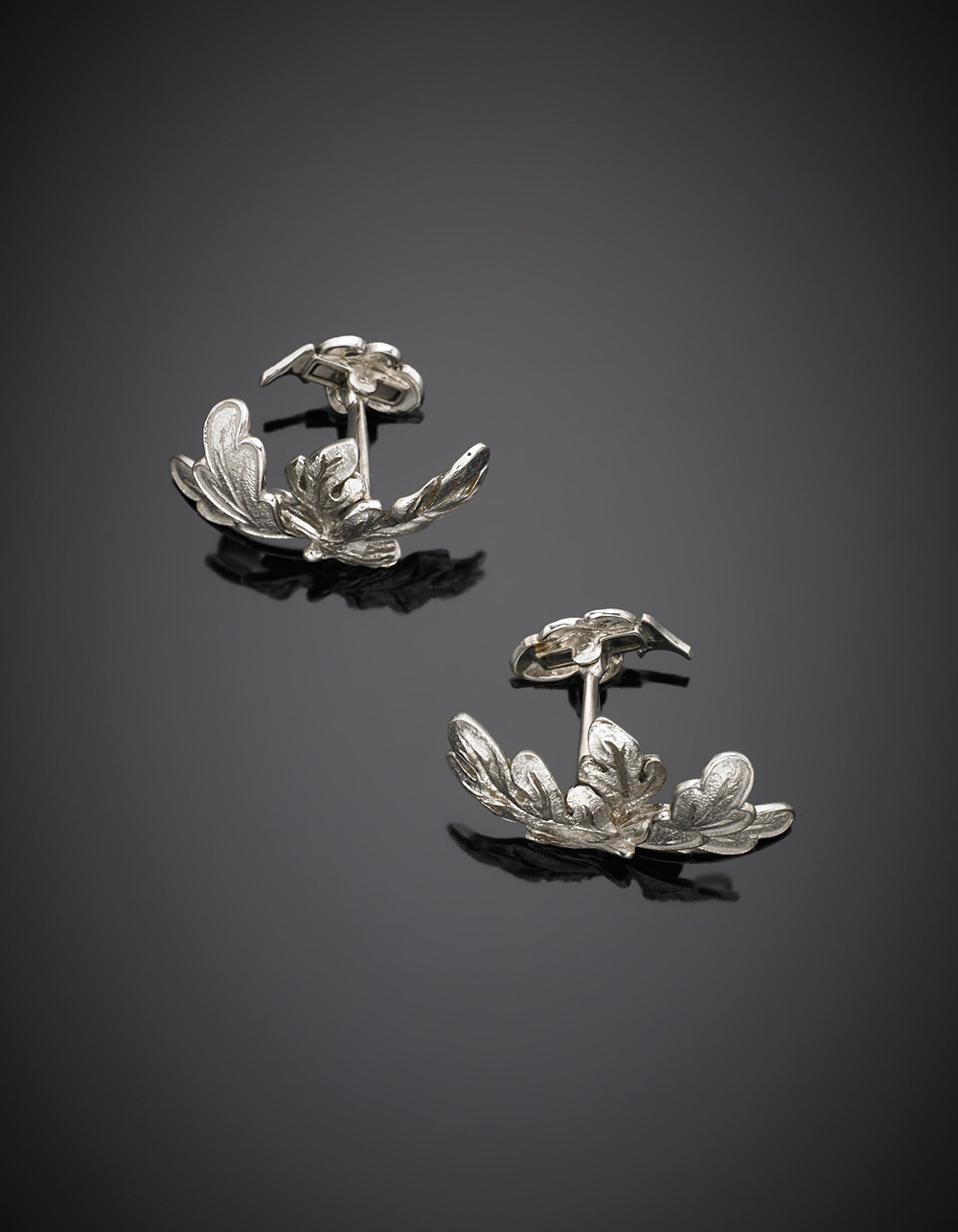 White gold oak-leaf cufflinks, g 18.60. Inscribed G 31172