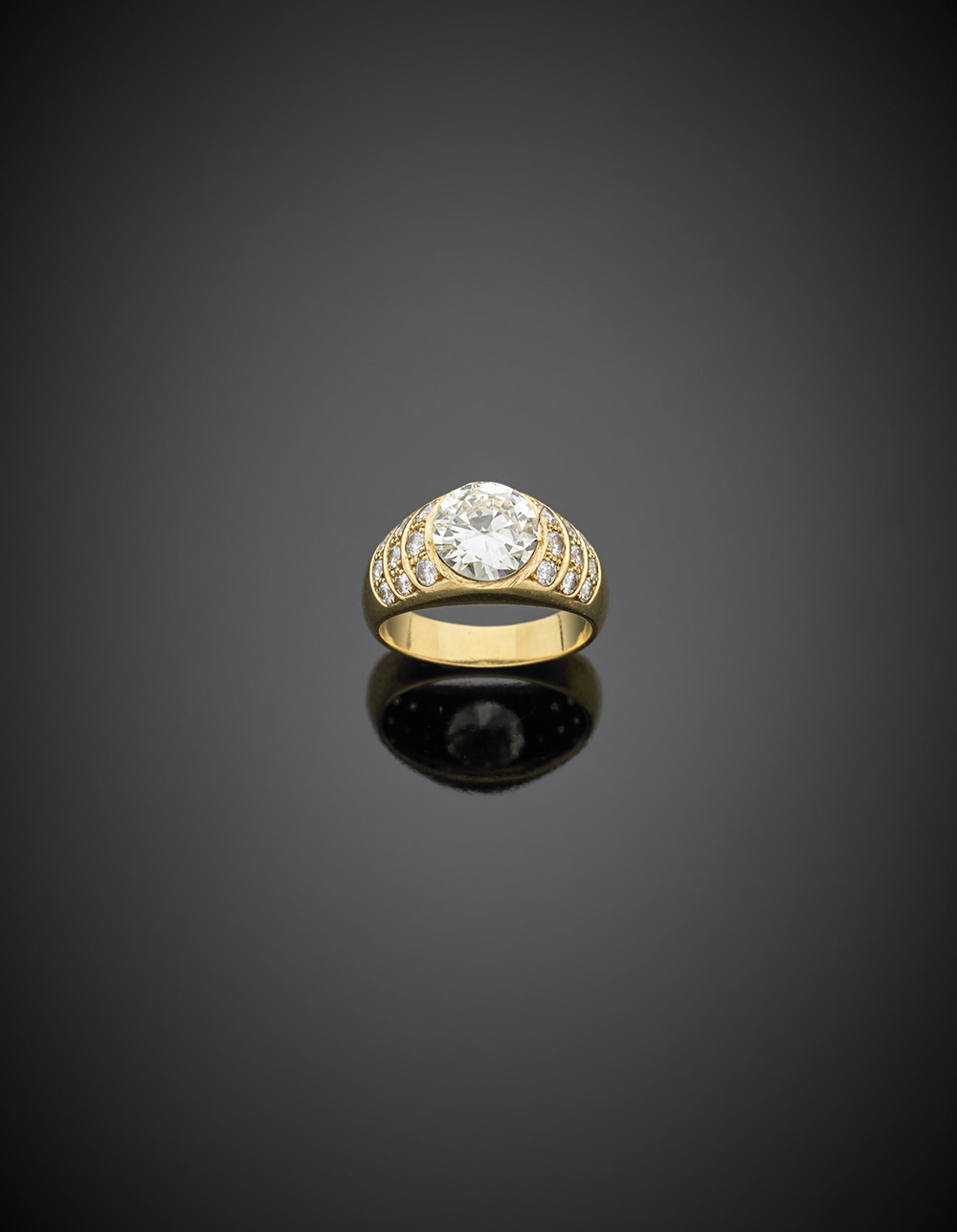 Lot 1370 | Anello in oro giallo con diamanti e al centro un diamante di ct. 2,44 g 8,60...