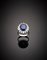 Anello in oro bianco con diamanti rotondi a contornare uno zaffiro ovale di...