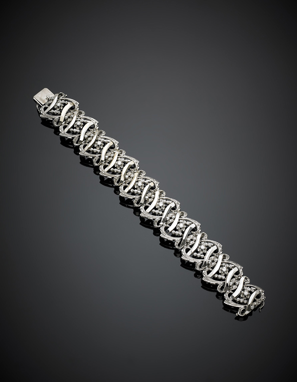 White gold bracelet accented with diamonds, g 67.70, length cm 17.50, h cm 2.10 circa.
