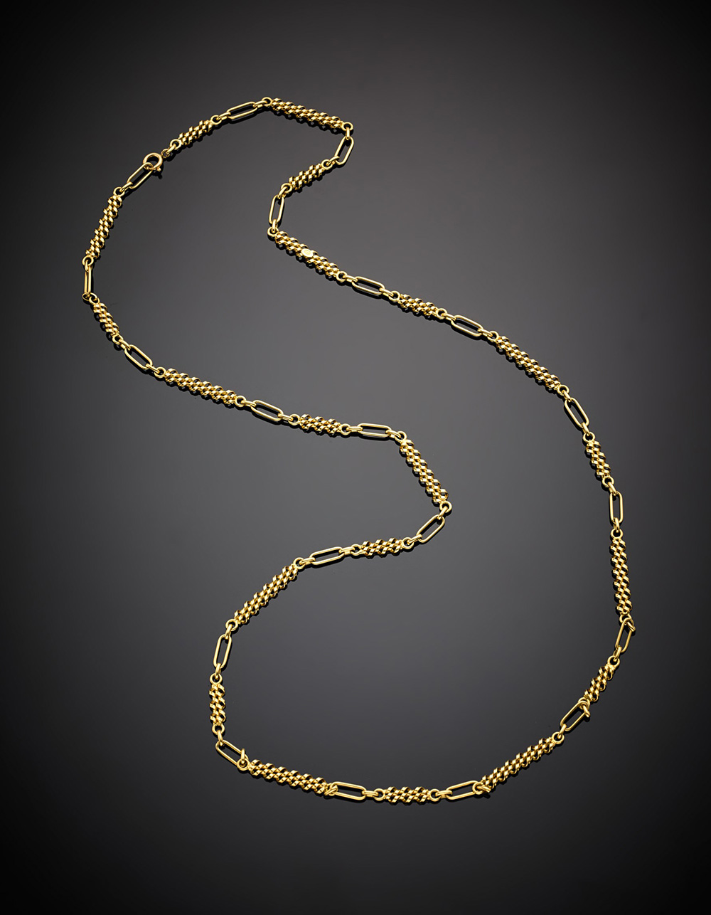 Catena in oro giallo con losanghe, g 50,08, lungh. cm 92 circa.