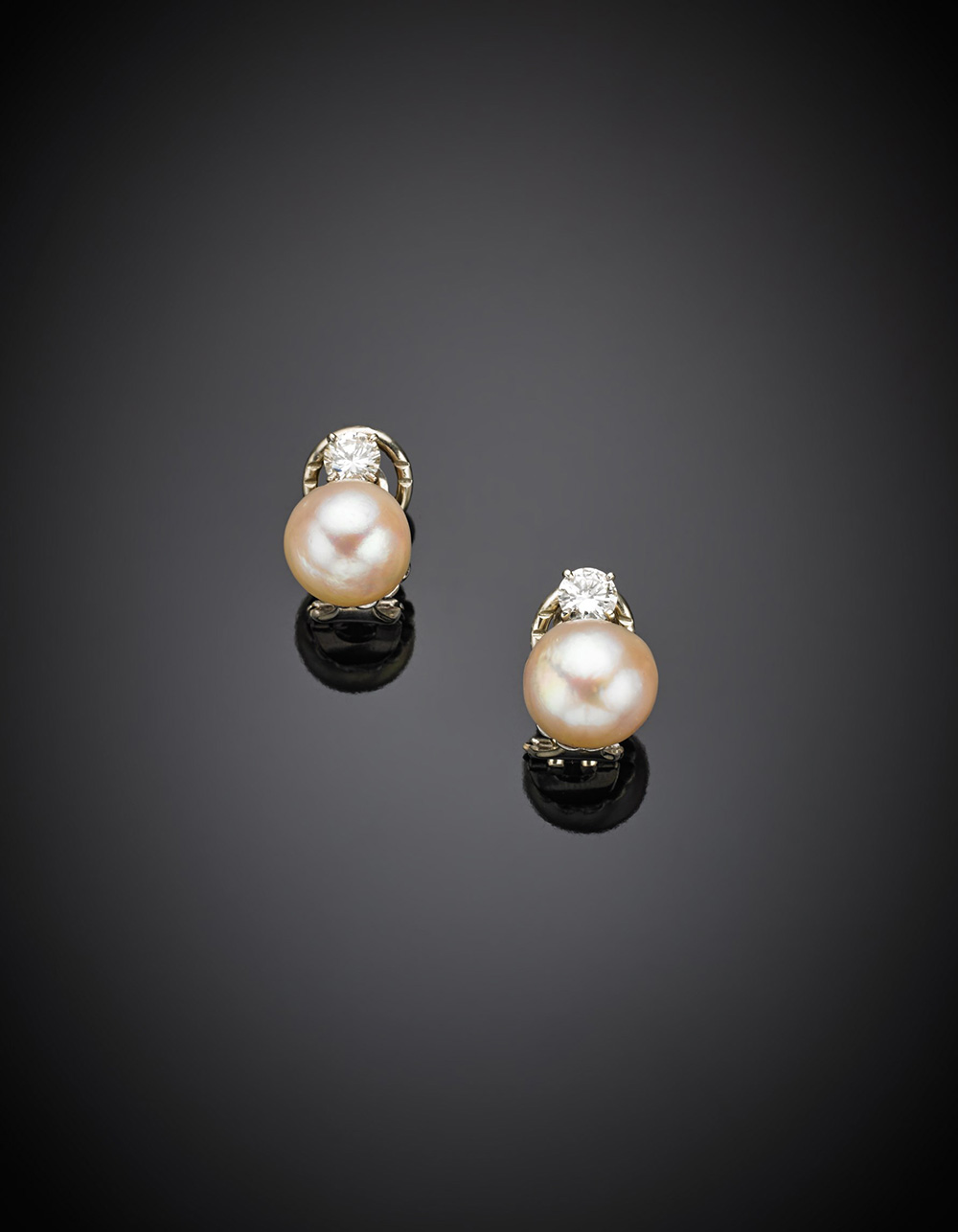 Orecchini in oro bianco con perle di coltura e diamante, g.8,45