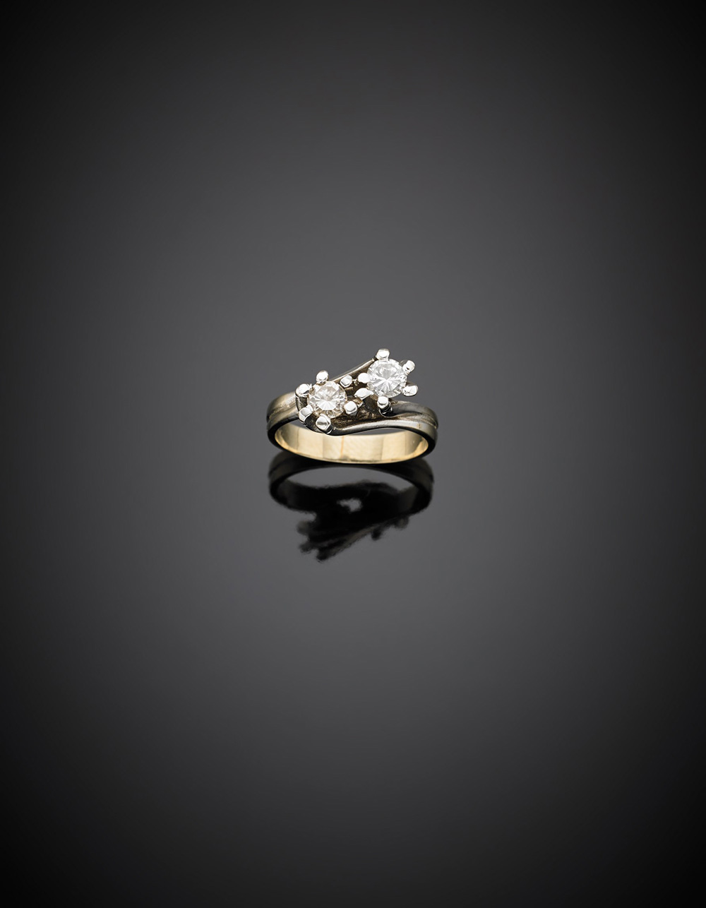 Lot 1497 | Anello a contrariè con due diamanti di ct. 0,25 circa ciascuno, g 4,75 misura...