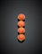 Spilla in oro giallo e quattro cabochon rotondi di corallo arancione, g 8,30, lungh. cm 5,0 circa.