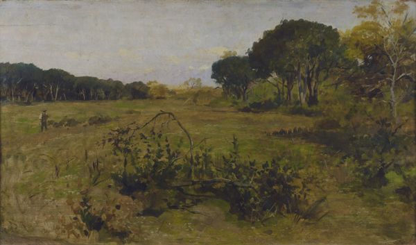 Francesco Gioli (San Frediano a Settimo, 1846 - Firenze, 1922) San Rossore, 1886 Olio su tavola, cm. 40x67 Firma e data in basso a sinistra. Sul verso: cartellino a stampa con firma di Renato Tassi.