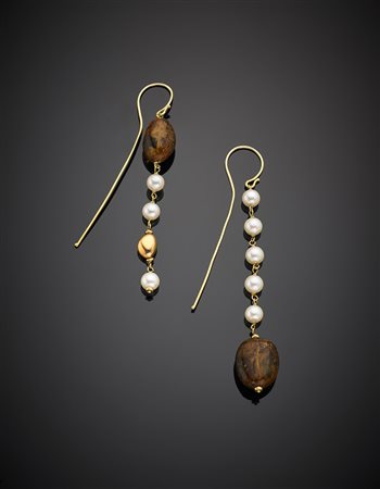 Yellow gold pearl and amber pendant earrings, g 11.10, length cm 10.20 circa.