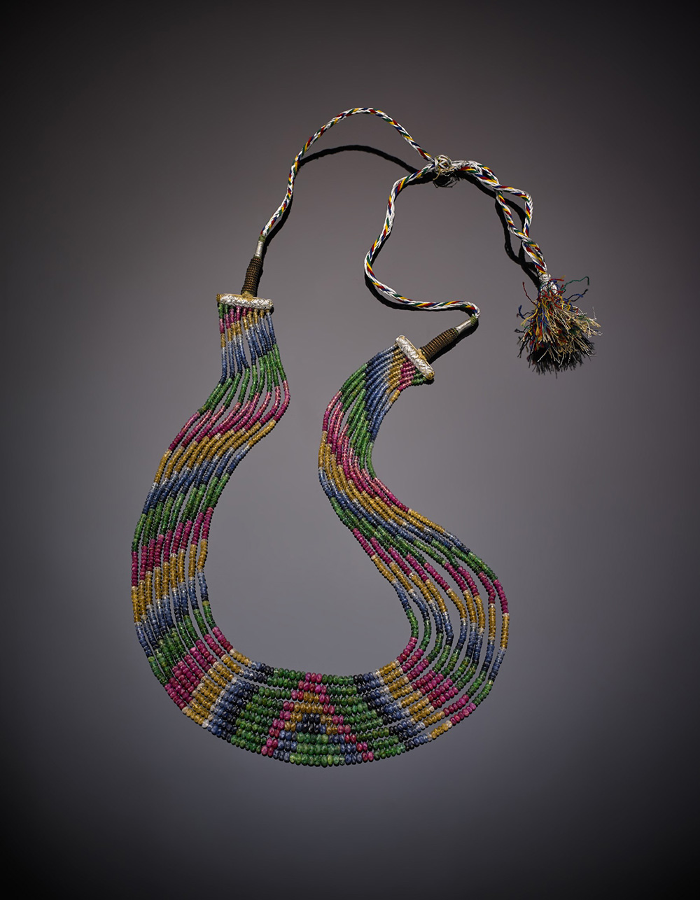 Nine-strand faceted and graduated bead necklace, fabric clasp, g 91.2, length cm 47.5 circa.