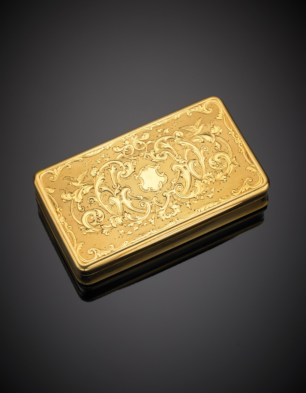 Yellow gold engraved and chiselled box, g 62.27, length cm 8, width cm 4.50, h cm 1.50 circa.