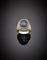 Bi-coloured gold diamond and probable layered sapphire ring, g 7.59 size 13/53.