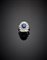 Anello in oro bianco con diamanti rotondi e a navette, al centro uno zaffiro...