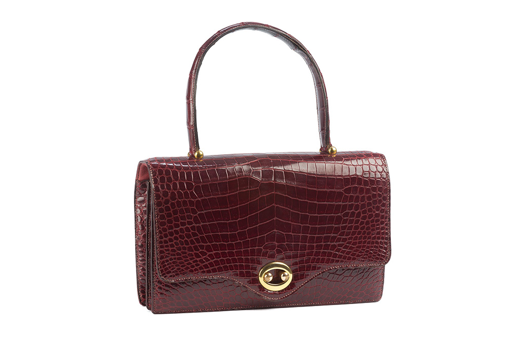 Borsa "Boutonnière" in coccodrillo color Bourgogne (cm 26,50) (difetti al manico, lievi segni d'uso)