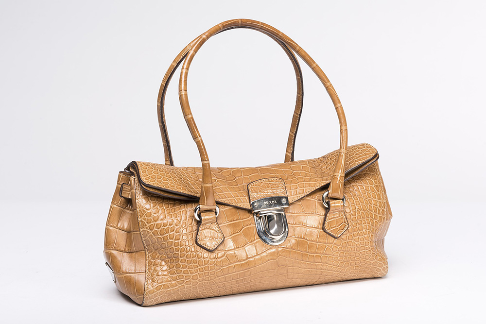 Lot 1920 | PRADABorsa a spalla con 2 manici in coccodrillo biondo. Presente certificato...