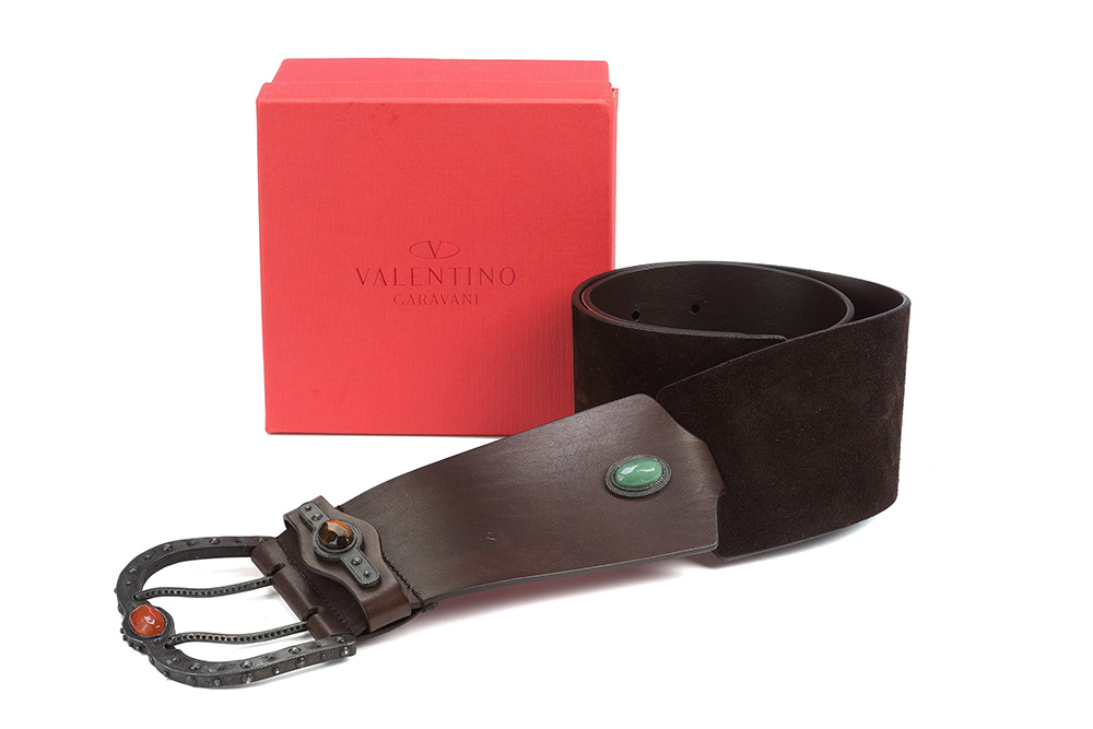 VALENTINO GARAVANICintura in pelle e camoscio color testa di moro con grande...
