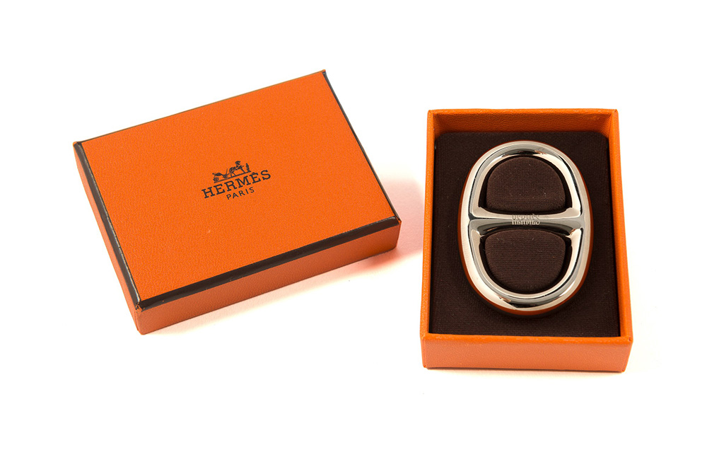 HERMES Ferma foulard a forma di fibbia color nichel, con scatola...