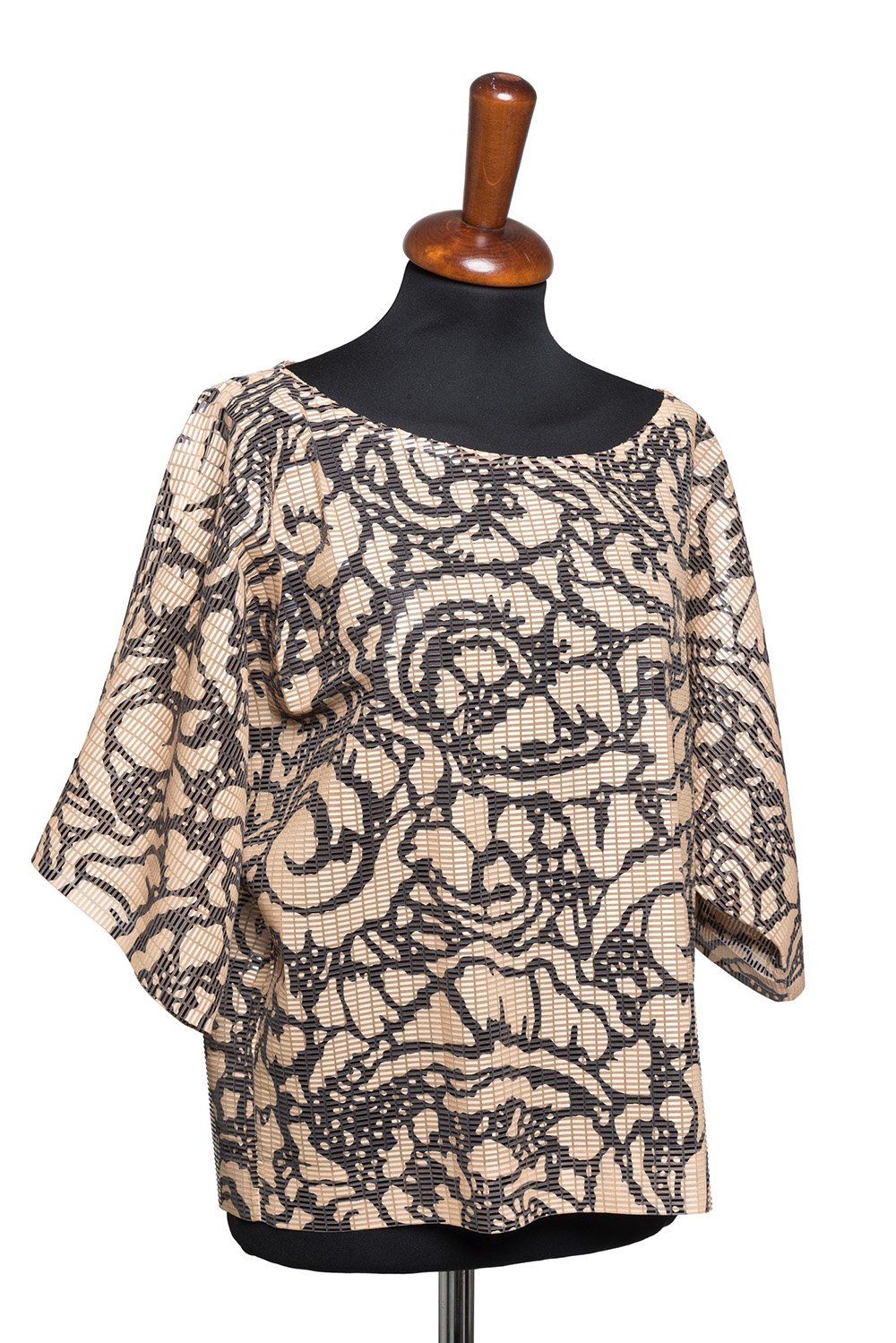 Maglia in tessuto serigrafato con disegno lucido nei toni del nero e del cipria