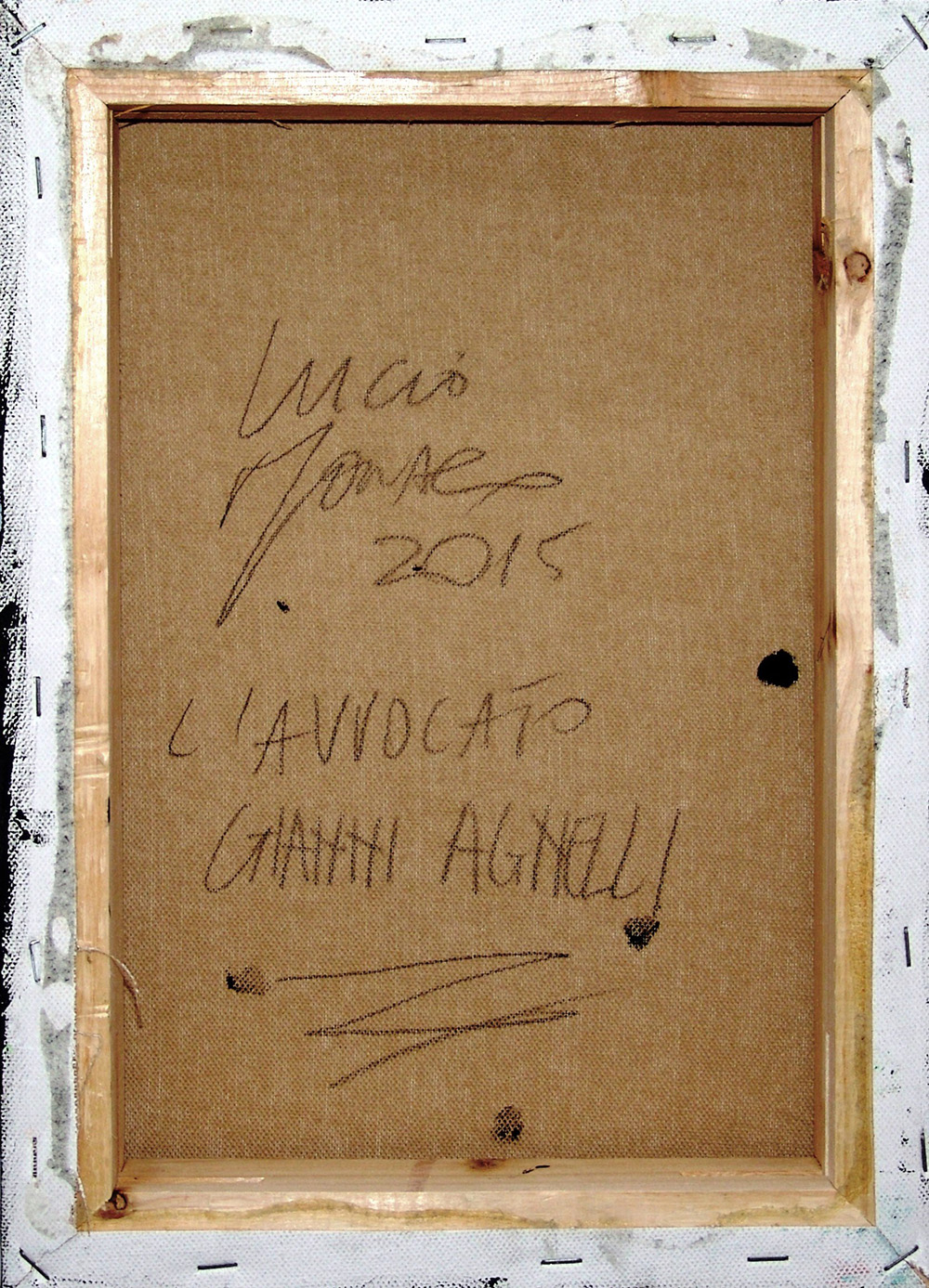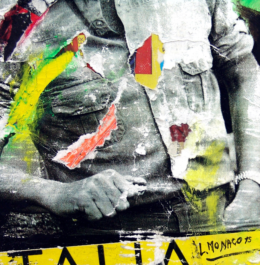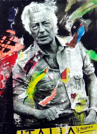 Lucio Monaco 1957, Mosciano Sant'Angelo (Te) - [Italia] L'avvocato Gianni Agnelli décollage e acrilico su tela 35x25 cm 2015 firma dell’artista in basso a destra e sul retro certificato di autenticità Picenum