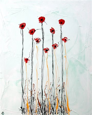 Davide Prudenza 1962, Fidenza (Pr) - [Italia] Flowers in green tecnica mista su tela 100x80 cm 2015 firma dell’artista in basso a sinistra certificato di autenticità Picenum
