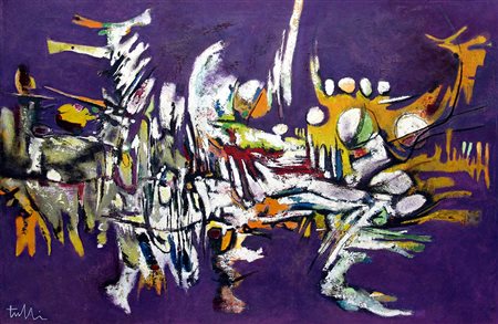 Wladimiro Tulli 1922, Macerata (Mc) - 2003, Macerata (Mc) - [Italia] Ad Ovest se ne va olio su tela 80x120 cm firma dell'artista in basso a sinistra; presenti alcune craquelures nella pittura certificato di autenticità Picenum; sul retro cartiglio "III Premio Scipione" Macerata 1964