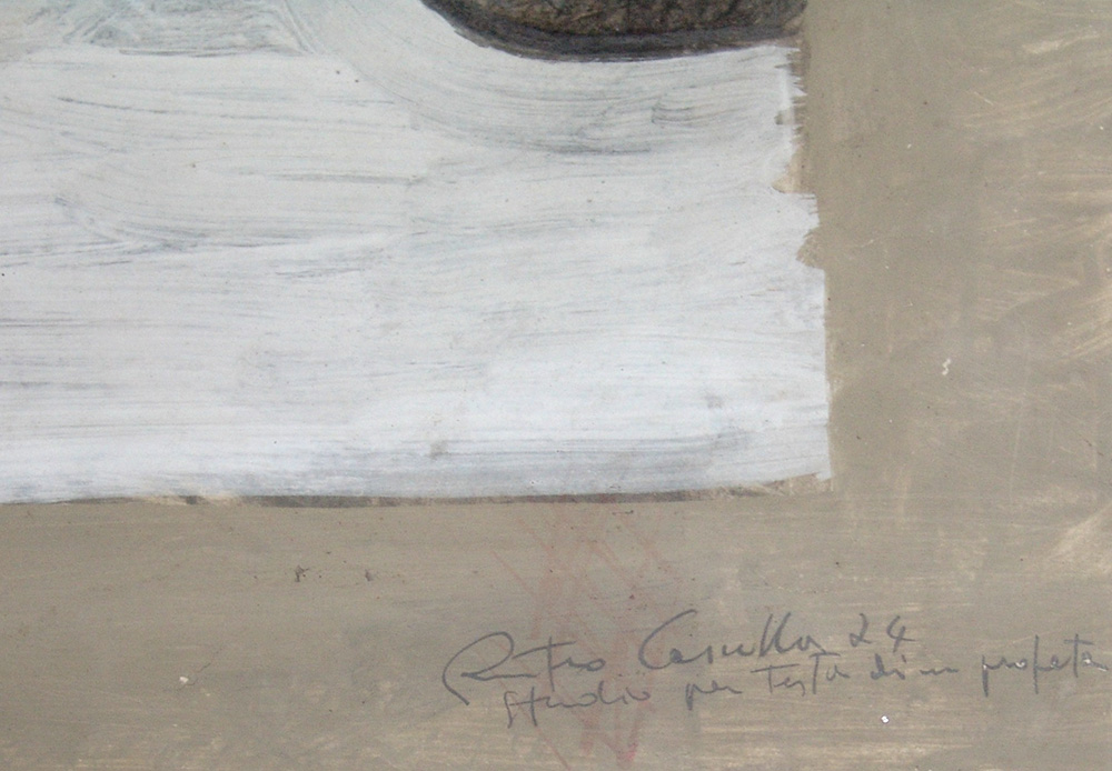 Pietro Cascella 1921, Pescara (Pe) - 2008, Pietrasanta (Lu) - [Italia] Studio per testa di un profeta tecnica mista su cartoncino 68x88 cm 1974 firma dell'artista in basso a destra; opera con cornice certificato di autenticità Picenum