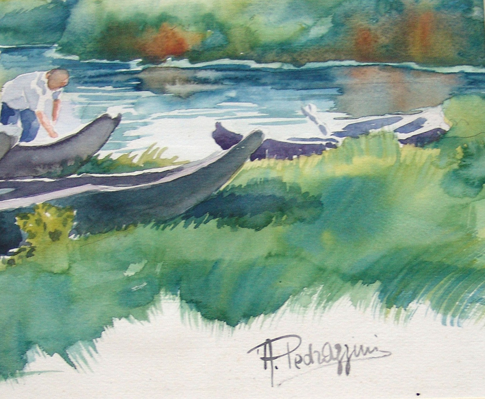 Aurelio Pedrazzini 1927, Milano (Mi) - [Italia] In barca sul fiume acquerello...