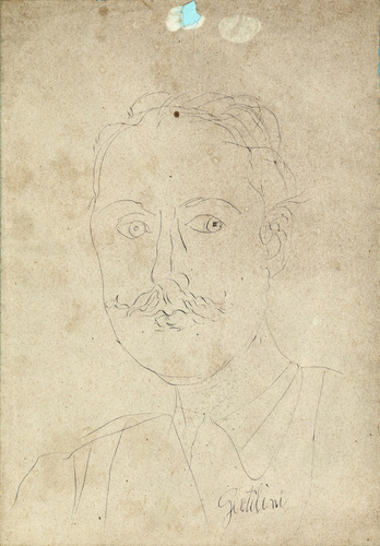 Franco Gentilini, AUTORITRATTO Penna su carta, cm 47x32,5FIrmato in basso a destra "Gentilini"Mancanze e difetti della carta