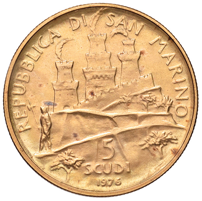 SAN MARINO5 scudi 1976 in oro.FDC. In astuccio.