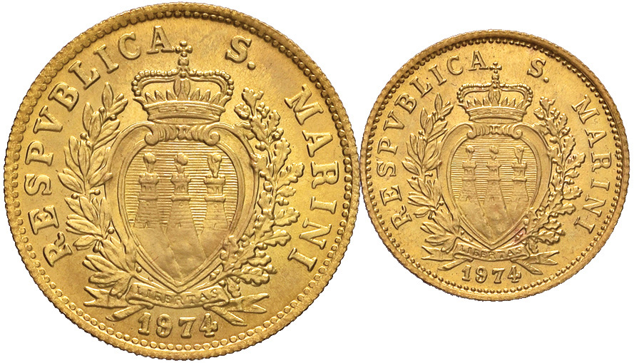 SAN MARINOScudi 2 e 1 1974, in oro. SPL o migliori