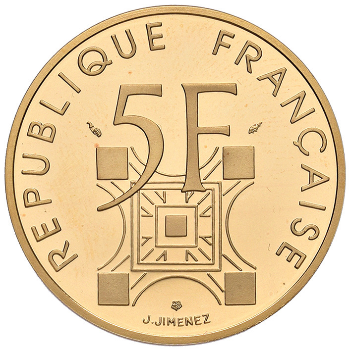 5 franchi in oro 1889/1989 "Tour Eiffel". FDC. In astuccio