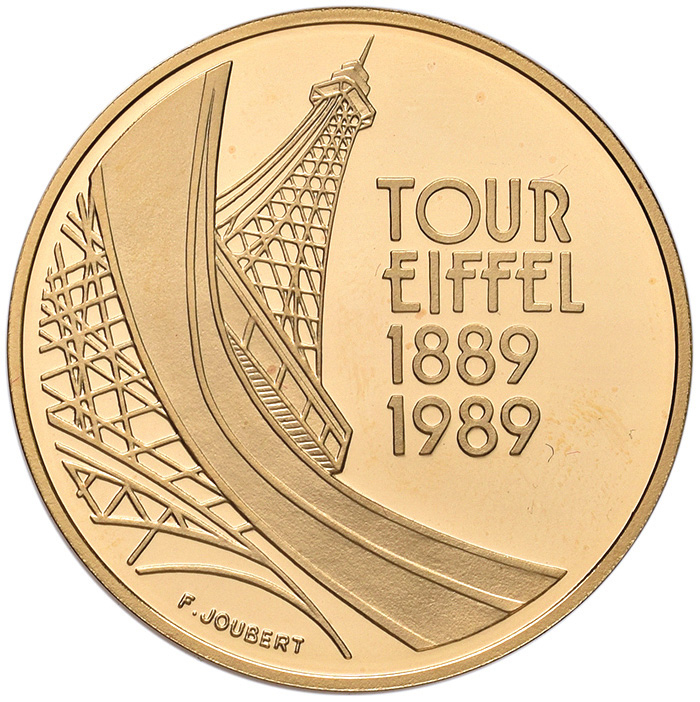 FRANCIA. Repubblica. 5 franchi in oro 1889/1989 "Tour Eiffel". FDC. In astuccio