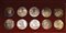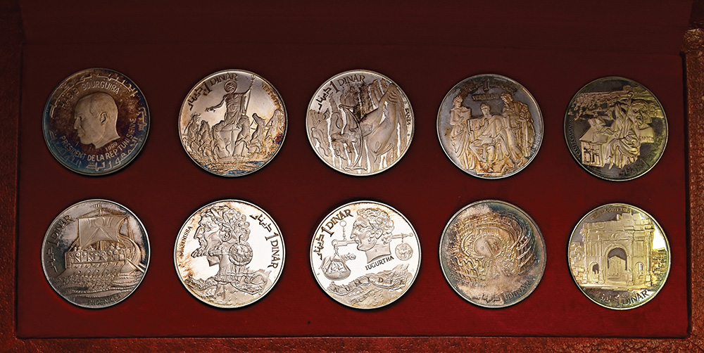 Astuccio con 10 monete da 1 dinar 1969 in argento, l'una diversa dall'altra. PROOF.