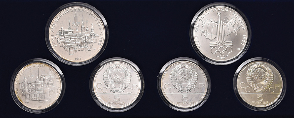 Lot 205 | U.R.S.S.Astuccio con 6 monete in argento ( 2 da 10 rubli e 4 da 5 rubli) 1977...