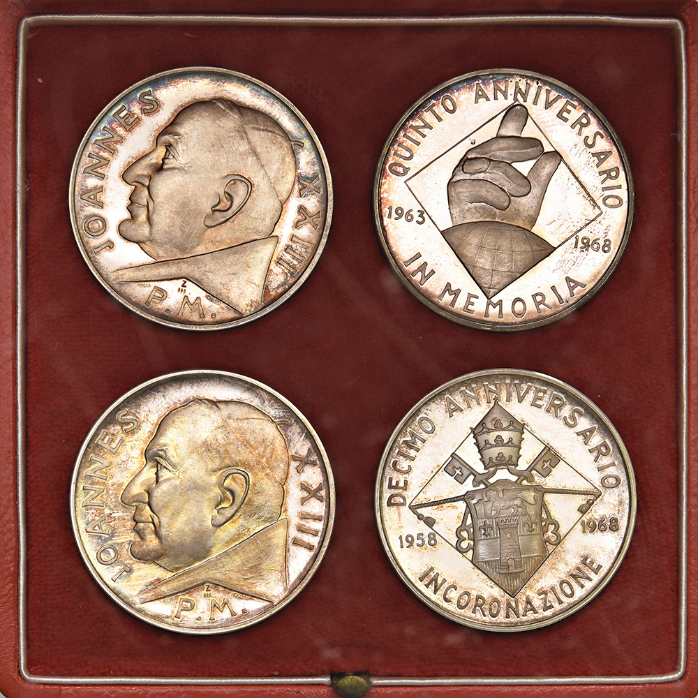 Lot 225 | GIOVANNI XXIII.Astuccio con 4 medaglie in argento 1968 (mm 32) PROOF. Cocepa.