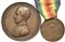 Medaglia in bronzo (mm 59) per la posa della pietra per la ferrovia. Un colpo sul bordo e colpetti diffusi sul D/. MB/BB. Offerta con medaglia della guerra 1914-1918 con nastro.