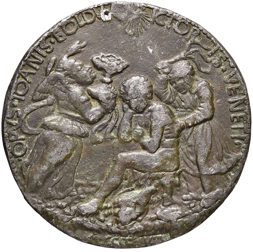 Medaglia in piombo di grande modulo (mm 85) di autore veneziano del sec. XV, di epoca leggermente posteriore. BB