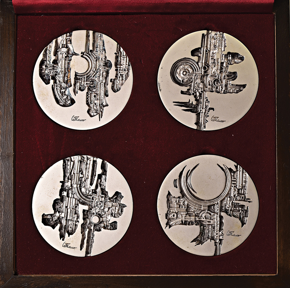 PIERO CATTANEO (opus). Serie di 4 medaglie in argento, "Discorsi" (mm 65)....