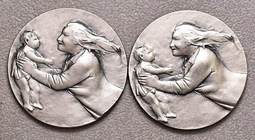 Medaglia in argento 1977, "La Pace" (mm. 45,8). Lotto di due esemplari. SPL. In astuccio.
