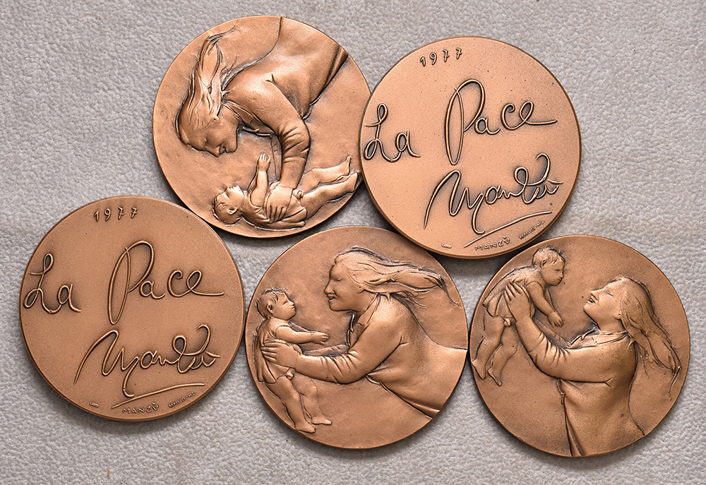 Medaglia in bronzo 1977, "La Pace" (mm. 45.6).Lotto di 5 esemplari. SPL o migliori. In astucci.