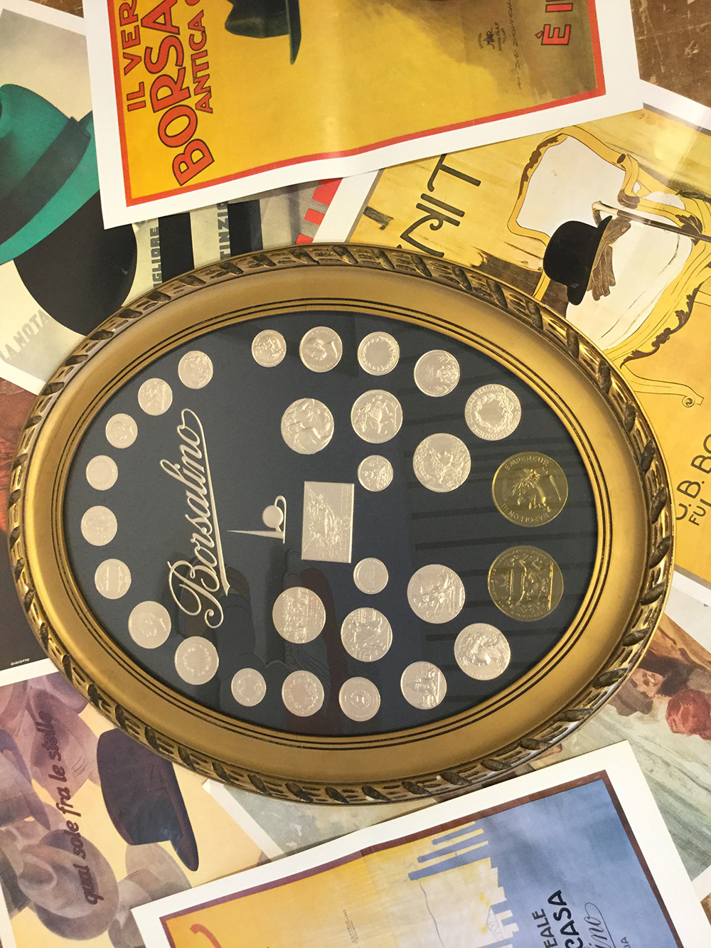 Giuseppe Borsalino e Fratello SA, Alessandria. Cornice ovale con 28 medaglie e una placchetta in lotto con 7 manifesti della Borsalino.