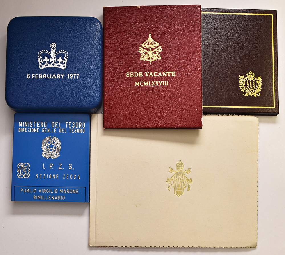 Lot 291 | 5 monete in argento più 3 serie Vaticano, più astuccio serie Argentina Giochi...