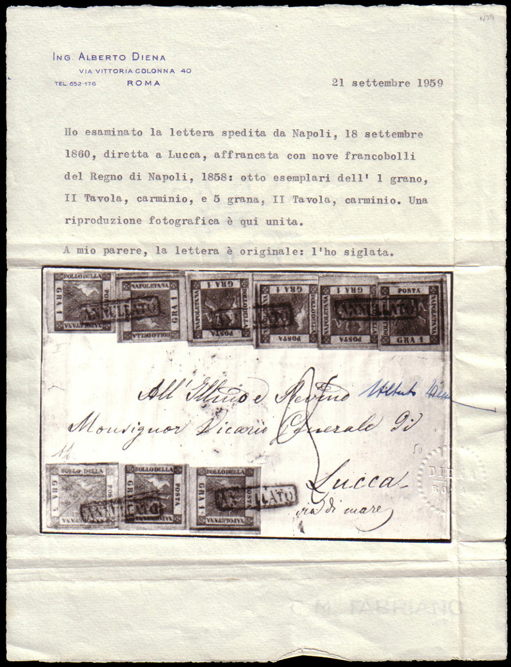 Cert. A. Diena, G. Chiavarello. Signed A. Fiecchi