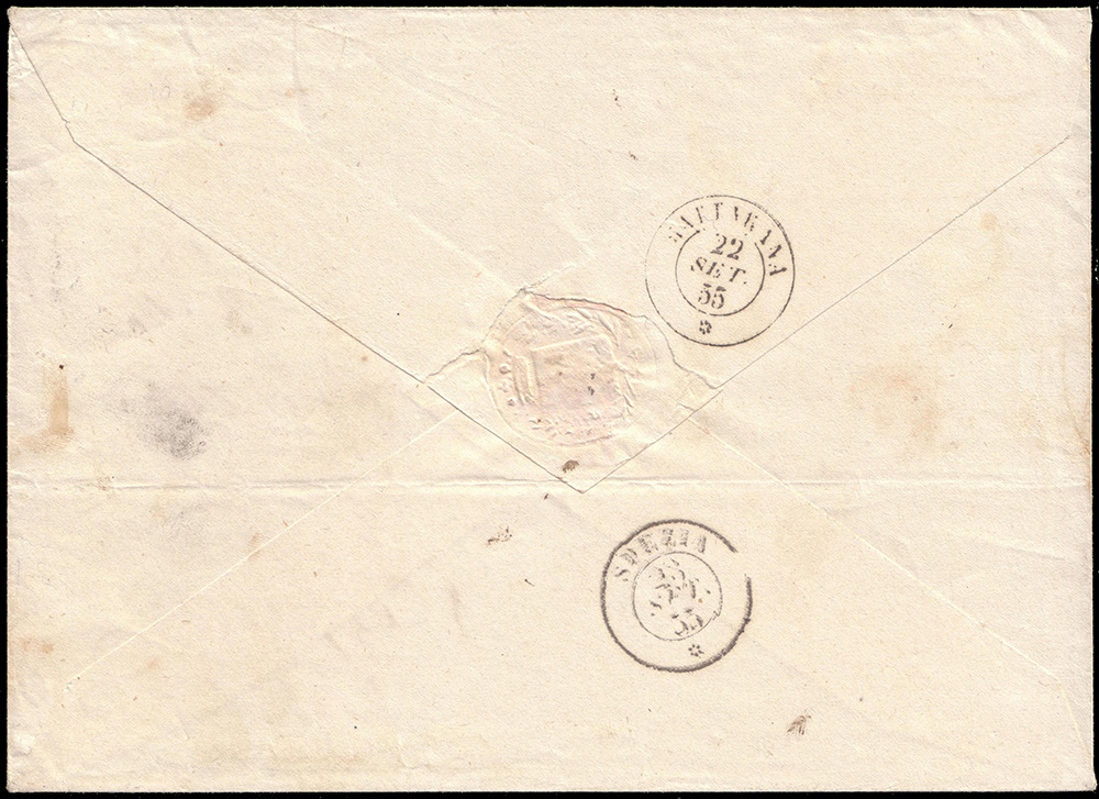 [SARDEGNA] 1855 (22 set.)II emissione.Busta da Levanto per Vezzano,...