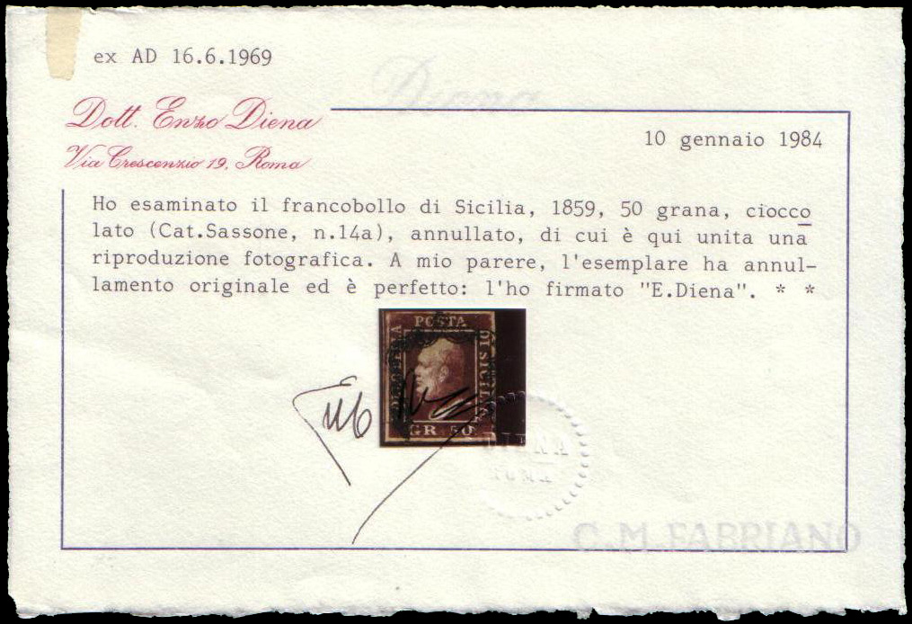 [SICILIA] 185950g. cioccolato. Cert. En. Diena. Firma Em....