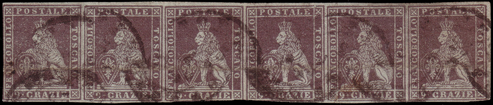 [TOSCANA] 18529cr. bruno violaceo su grigio, striscia orizzontale di 6...