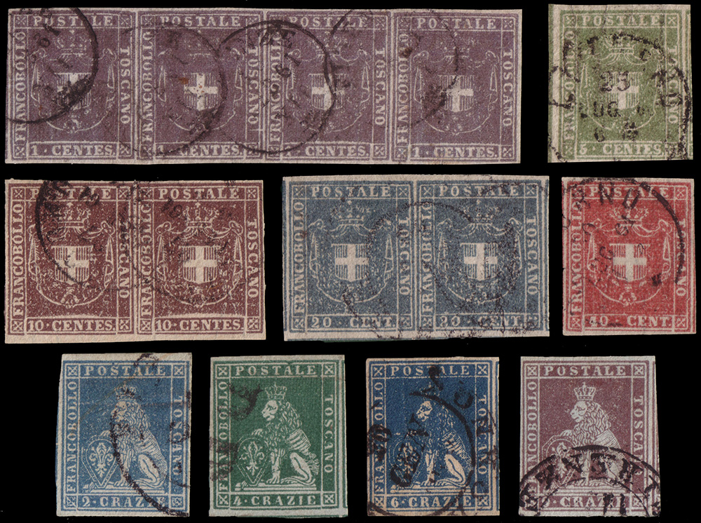 [TOSCANA] 1852/1860Piccolo lotto formato da 9 esemplari, tutti differenti,...