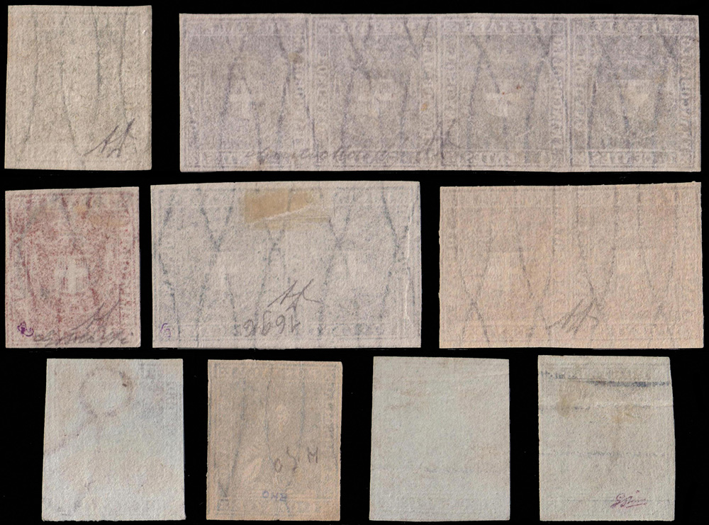 Piccolo lotto formato da 9 esemplari, tutti differenti, tra cui 2 coppie e una striscia di 4.
