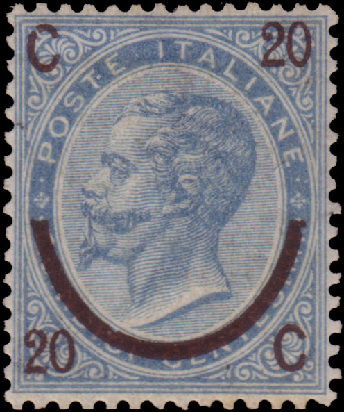 [REGNO D'ITALIA] 1865"Ferro di cavallo". 20/15c. celeste III tipo....