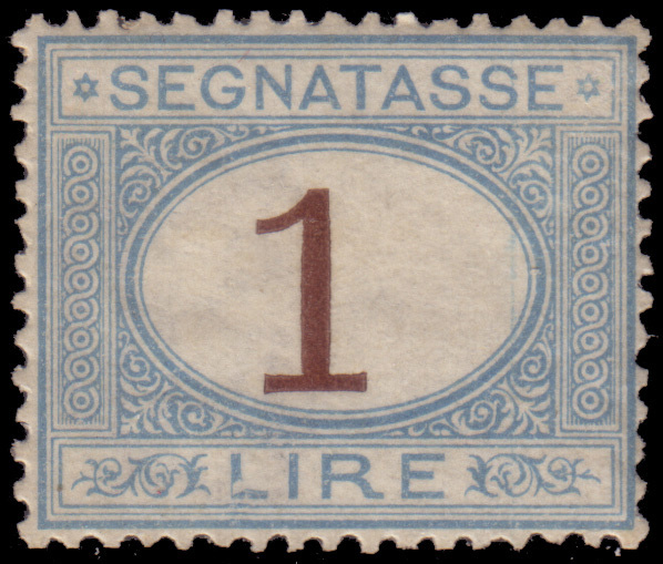 Segnatasse. 1 lira azzurro chiaro e bruno.