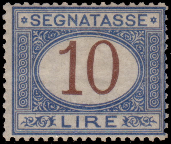 Segnatasse. 10 lire azzurro e bruno.