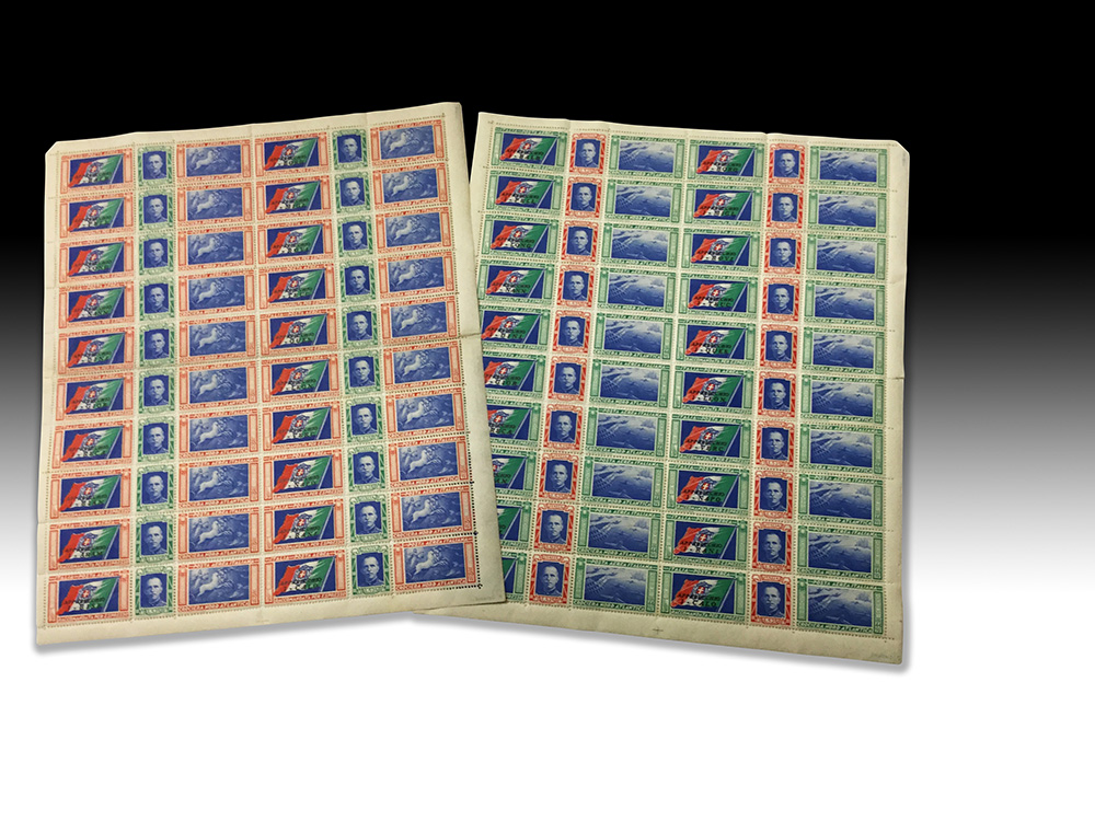 Posta aerea "Crociera del Decennale". Fogli completi di 20 valori della serie "Trittici".